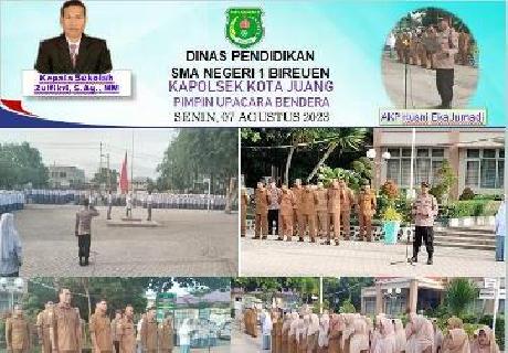 Hari Senin, 07 Agustus 2023 di SMA Negeri 1 Bireuen berlangsung dengan semangat kebangsaan yang tinggi saat Kapolsek Kota Juang AKP. Husni Eka Jumadi hadir di halaman SMA Negeri 1 Bireuen menjadi momen yang sangat istimewa bagi siswa/i, Dewan Guru, serta Staf Tata Usaha. Dengan kehadiran Kapolsek Kota Juang AKP.. Husni Eka Jumadi menambah nuansa keamanan dan kebersamaan...