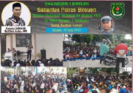 Satlantas Polres Bireuen Isi Materi MPLS Siswa/i SMAN 1 Bireuen dengan Pengenalan Tertib Berlalu Lintas. Sosialisasi dan edukasi tersebut diberikan Satlantas Polres Bireuen saat peserta didik baru yang masih menjalani Masa Pengenalan Lingkungan Sekolah (MPLS). di SMA Negeri 1 Bireuen Pada kegiatan MPLS (Masa Pengenalan Lingkungan Sekolah), di pimpin Bripka Rahmad Hidayat salah seoran...