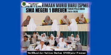 Pada hari pertama pelaksanaan verifikasi dan validasi berkas Seleksi Penerimaan Murid Baru (SPMB) jalur prestasi di SMA Negeri 1 Bireuen, suasana tampak tertib dan terorganisir. Kegiatan ini berlangsung mulai tanggal 18 hingga 22 Februari 2025, sesuai dengan jadwal yang telah ditetapkan oleh panitia SPMB. *JADWAL VERIFIKASI, TES BACA ALQURAN, DAN WAWANCARA* (Lokasi : Ruan...