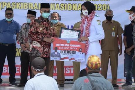 Setelah melaksanakan tugas sebagai Pasukan Pengibar Bendera Pusaka (Paskibraka) nasional pada HUT Ke-75 RI di Istana Negara, Senin (17/8/2020) lalu, Indrian Puspita Ramadhani, Sabtu (22/8/2020) siang tadi, dikembalikan ke sekolahnya yaitu SMAN 1 Bireuen. Penyerahan dilakukan langsung oleh Bupati Bireuen, Dr H Muzakkar A Gani SH MSi dalam suatu acara yang mulai dari pen...