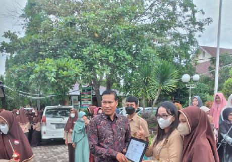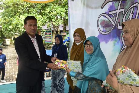 Kepala SMA Negeri 1 Bireuen Bapak Zulfikri, S.Ag,. M.M Pemberian hadiah kepada siswa/i yang didampingi Oleh Wali Kelas dalam kegiatan literasi Tahun 2022