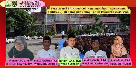 SMA Negeri 1 Bireuen Gelar Yasinan dan Doa Bersama Sambut Ujian Semester Genap Tahun Pelajaran 2024/2025 Bireuen, 23 Mei 2025 — Dalam rangka menyambut ujian semester genap Tahun Pelajaran 2024/2025, SMA Negeri 1 Bireuen menggelar kegiatan doa bersama yang berlangsung khidmat di halaman sekolah pada Jumat pagi. Kegiatan ini diikuti oleh seluruh siswa siswi kelas XI dan Kelas X, dewan...
