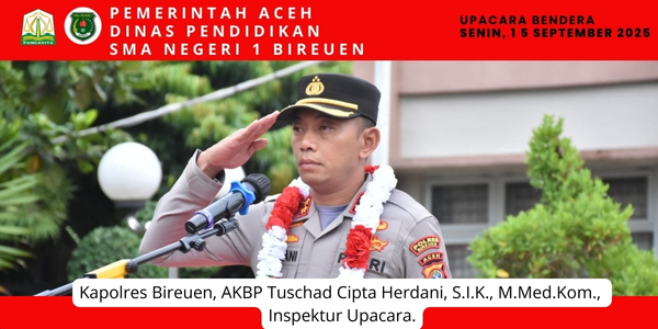 "Upacara hari ini terasa istimewa karena dipimpin langsung oleh Kapolres Bireuen, AKBP Tuschad Cipta Herdani, S.I.K., M.Med.Kom., sebagai Inspektur Upacara.